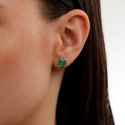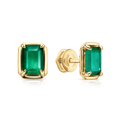 Серьги с 2 изумрудами природными, 1.6 карат, цвет 4, чистота 3, тип огранки Б; Желтое золото 585 пробы.