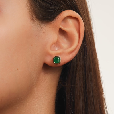 Серьги с 2 изумрудами природными, 2.02 карат, цвет 3, чистота 3, тип огранки Б; Желтое золото 585 пробы.