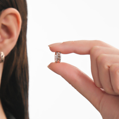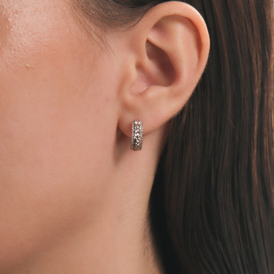 Серьги с 48 бриллиантами природными, 0.12 карат, огранка круг 17 граней, цвет 2, чистота 2, тип огранки А; Розовое золото 585 пробы.