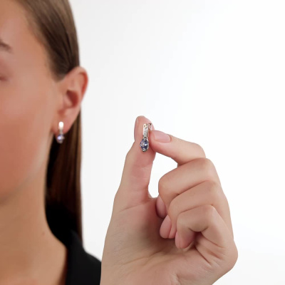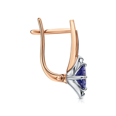 Серьги с 6 бриллиантами природными, 0.02 карат, огранка круг 17 граней, цвет 2, чистота 2, тип огранки А; 2 танзанитами природными, 1.08 карат; Розовое золото 585 пробы.