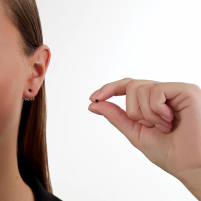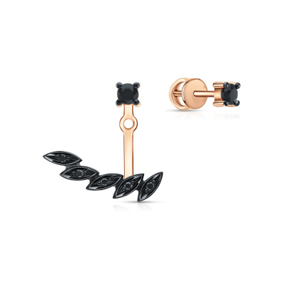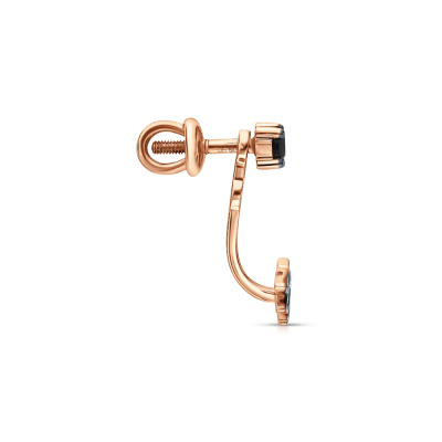 Серьги с 5 бриллиантами черными природными облагороженными, 0.04 карат, огранка круг 57 граней, цвет 7, чистота 6, тип огранки А; 2 ониксами черными природными; Розовое золото 585 пробы.