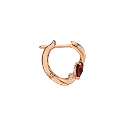 Серьги с 2 бриллиантами природными, 0.01 карат, огранка круг 17 граней, цвет 2, чистота 2, тип огранки А; 2 гранатами природными, 0.51 карат; Розовое золото 585 пробы.