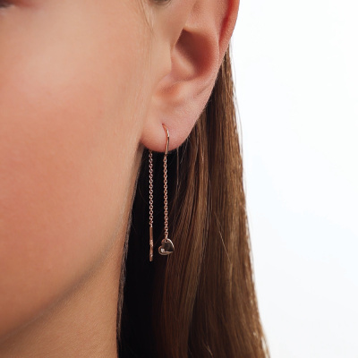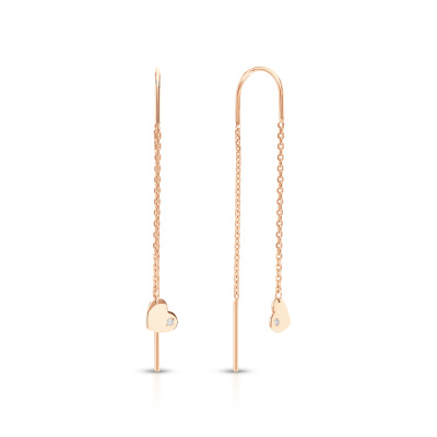 Серьги с 2 бриллиантами природными, 0.009 карат, огранка круг 17 граней, цвет 2, чистота 2, тип огранки А; Розовое золото 585 пробы.