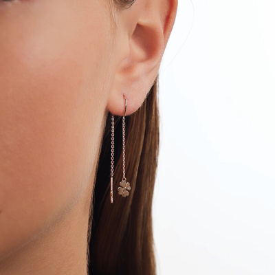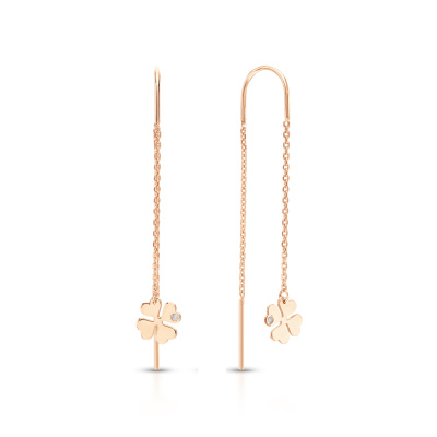 Серьги с 2 бриллиантами природными, 0.009 карат, огранка круг 17 граней, цвет 2, чистота 2, тип огранки А; Розовое золото 585 пробы.