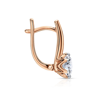 Серьги с 2 бриллиантами выращенными, 2.02 карат, огранка круг 57 граней, цвет 4, чистота 5, тип огранки А; Розовое золото 585 пробы.