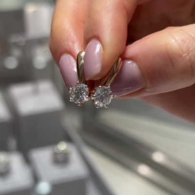Серьги с 2 бриллиантами выращенными, 2.01 карат, огранка круг 57 граней, цвет 4, чистота 5, тип огранки А; Розовое золото 585 пробы.