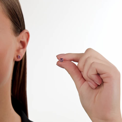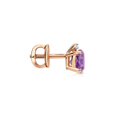 Серьги с 2 бриллиантами природными, 0.01 карат, огранка круг 57 граней, цвет 3, чистота 6, тип огранки А; 2 аметистами природными, 1.41 карат; Розовое золото 585 пробы.