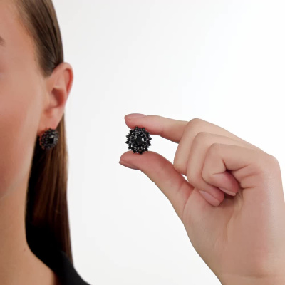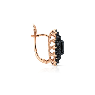 Серьги с 2 шпинелями черными природными, 3.16 карат; 72 сапфирами черными природными, 4.19 карат; Розовое золото 585 пробы.