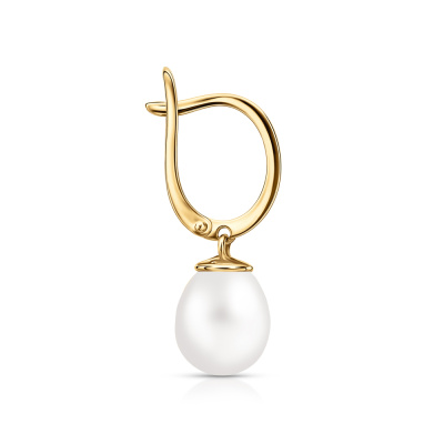 Серьги с 6 бриллиантами природными, 0.04 карат, огранка круг 57 граней, цвет 3, чистота 6, тип огранки А; 6 бриллиантами природными, 0.02 карат, огранка круг 17 граней, цвет 2, чистота 2, тип огранки А; 2 жемчугами пресноводными культ.белыми; Желтое золото 585 пробы.