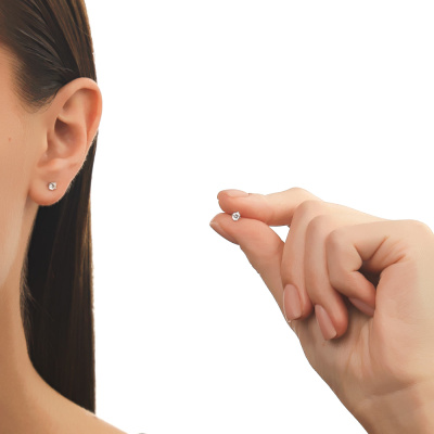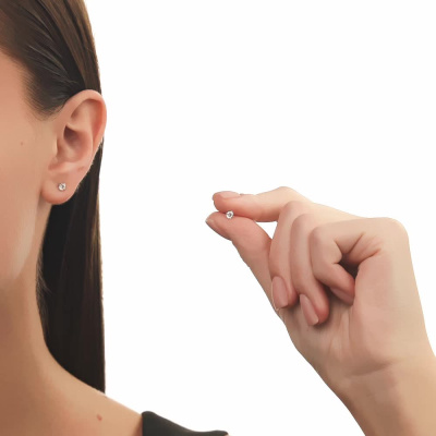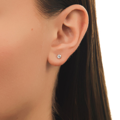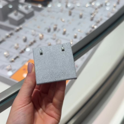 Серьги с 2 бриллиантами выращенными, 0.32 карат, огранка круг 57 граней, цвет 3, чистота 5, тип огранки А; Белое золото 585 пробы.