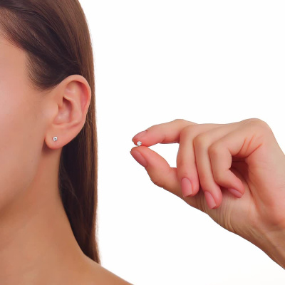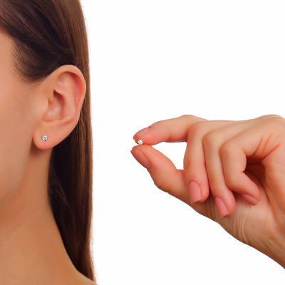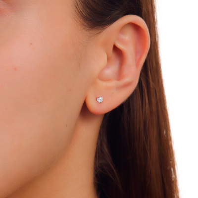 Серьги с 2 бриллиантами выращенными, 0.22 карат, огранка круг 57 граней, цвет 3, чистота 5, тип огранки А; Розовое золото 585 пробы.