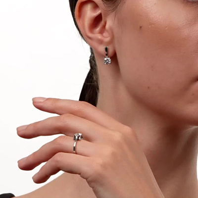 Серьги с 2 бриллиантами выращенными, 1.3 карат, огранка круг 57 граней, цвет 4, чистота 5, тип огранки А; Белое золото 585 пробы.