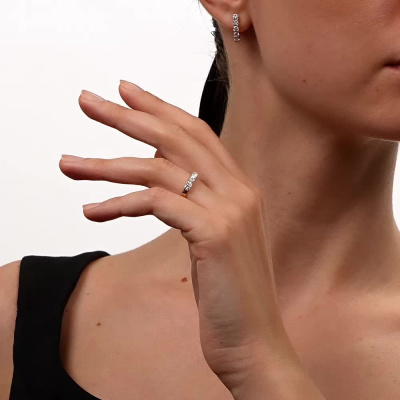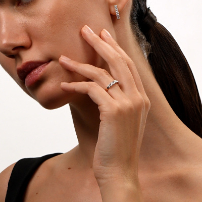 Серьги с 10 бриллиантами выращенными, 0.79 карат, огранка круг 57 граней, цвет 3, чистота 5, тип огранки А; Розовое золото 585 пробы.