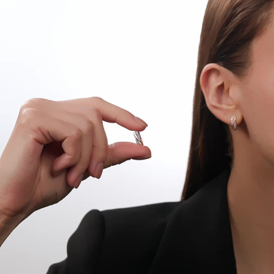 Серьги с 56 бриллиантами природными, 0.11 карат, огранка круг 17 граней, цвет 2, чистота 2, тип огранки А; Розовое золото 585 пробы.