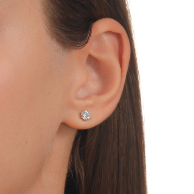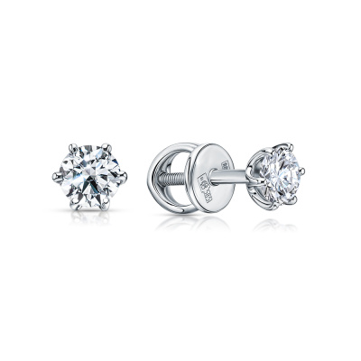 Серьги с 2 бриллиантами выращенными, 0.82 карат, огранка круг 57 граней, цвет 4, чистота 5, тип огранки А; Белое золото 585 пробы.
