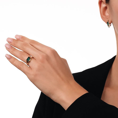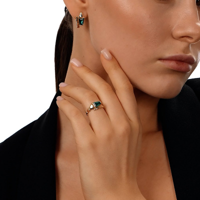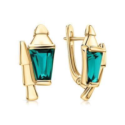 Серьги с 2 ситаллами изумруд, 1.98 карат; Желтое золото 585 пробы.