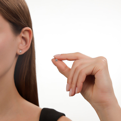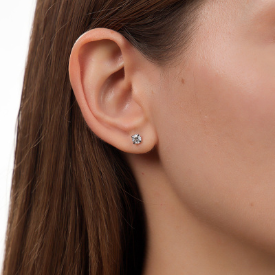 Серьги с 2 бриллиантами выращенными, 0.73 карат, огранка круг 57 граней, цвет 4, чистота 5, тип огранки А; Белое золото 585 пробы.