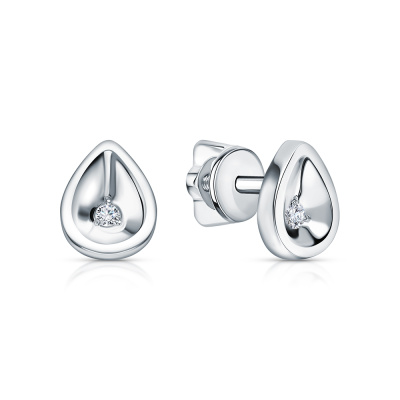Серьги с 2 бриллиантами природными, 0.02 карат, огранка круг 57 граней, цвет 3, чистота 6, тип огранки А; Платина 950 пробы.