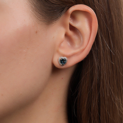 Серьги с 34 бриллиантами природными, 0.1 карат, огранка круг 17 граней, цвет 2, чистота 2, тип огранки А; 2 топазами лондон природными, 1.9 карат; Розовое золото 585 пробы.
