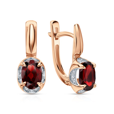 Серьги с 8 бриллиантами природными, 0.03 карат, огранка круг 17 граней, цвет 2, чистота 2, тип огранки А; 16 бриллиантами природными, 0.02 карат, огранка круг 17 граней, цвет 2, чистота 2, тип огранки А; 2 гранатами природными, 1.86 карат; Розовое золото 585 пробы.