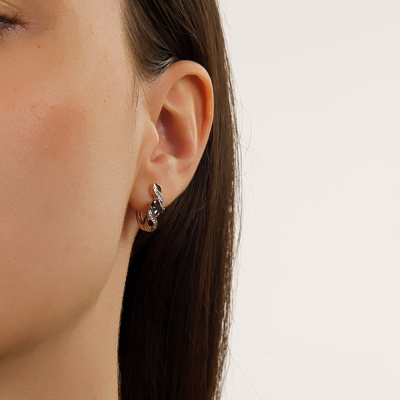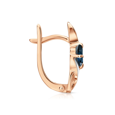 Серьги с 12 бриллиантами природными, 0.02 карат, огранка круг 17 граней, цвет 2, чистота 2, тип огранки А; 2 топазами лондон природными, 1.03 карат; Розовое золото 585 пробы.