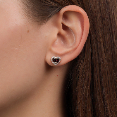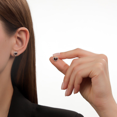 Серьги с 52 бриллиантами природными, 0.11 карат, огранка круг 17 граней, цвет 2, чистота 2, тип огранки А; 4 гранатами природными, 1.1 карат; Розовое золото 585 пробы.