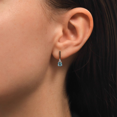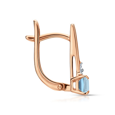 Серьги с 6 бриллиантами природными, 0.03 карат, огранка круг 17 граней, цвет 2, чистота 2, тип огранки А; 2 топазами свисс природными, 0.79 карат; Розовое золото 585 пробы.