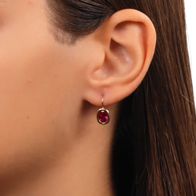Серьги с 2 рубинами синтетическими, 2.71 карат; Розовое золото 585 пробы.