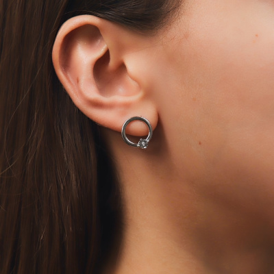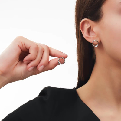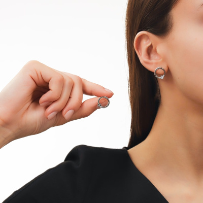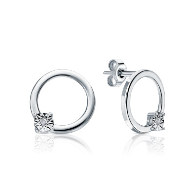 Серьги с 2 бриллиантами природными, 0.006 карат, огранка круг 17 граней, цвет 3, чистота 3, тип огранки Б; Серебро 925 пробы.