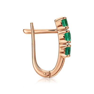 Серьги с 8 бриллиантами природными, 0.01 карат, огранка круг 17 граней, цвет 2, чистота 2, тип огранки А; 6 изумрудами природными, 0.99 карат, цвет 3, чистота 3, тип огранки В; Розовое золото 585 пробы.