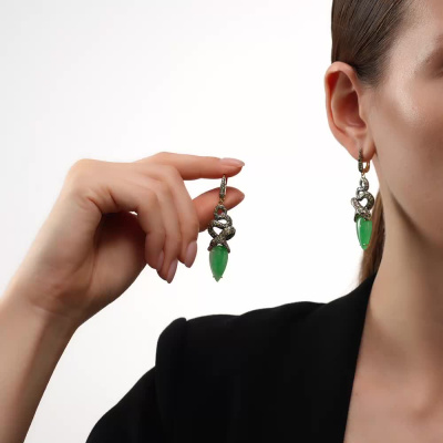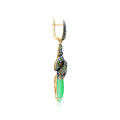 Золотые серьги с бриллиантами и бриллиантами коричневыми природными, жадеитом и сапфирами природными