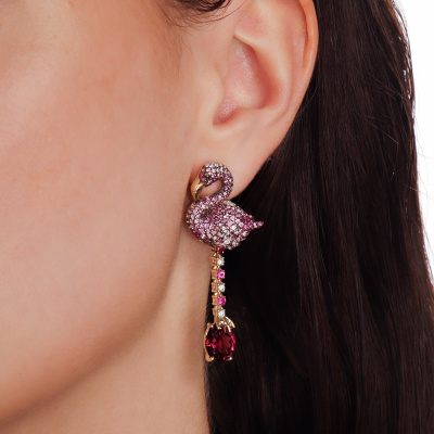 Серьги с 6 бриллиантами природными, 0.16 карат, огранка круг 57 граней, цвет 3, чистота 5, тип огранки А; 4 бриллиантами природными, 0.03 карат, огранка круг 57 граней, цвет 3, чистота 5, тип огранки А; 34 бриллиантами природными, 0.15 карат, огранка круг 57 граней, цвет 3, чистота 5, тип огранки А; 2 родолитами природными, 6.02 карат, тип огранки А; 6 рубинами природными, 0.24 карат, цвет 2, чистота 2, тип огранки А; 17 сапфирами розовыми природными, 0.21 карат, тип огранки А; 29 сапфирами розовыми природными, 0.36 карат, тип огранки А; 12 сапфирами розовыми природными, 0.13 карат, тип огранки А; 23 сапфирами розовыми природными, 0.14 карат, тип огранки А; 57 сапфирами розовыми природными, 0.35 карат, тип огранки А; 42 рубинами природными, 0.25 карат, цвет 2, чистота 2, тип огранки А; 2 бриллиантами черными природными облагороженными, 0.01 карат, огранка круг 57 граней, цвет 7, чистота 6, тип огранки А; 98 сапфирами розовыми природными, 0.46 карат, тип огранки А; Желтое зо