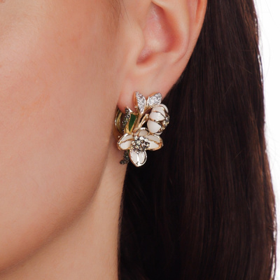 Золотые серьги с бриллиантами природными, эмалью и сапфирами природными