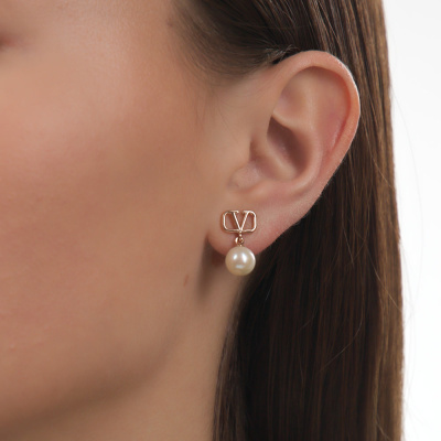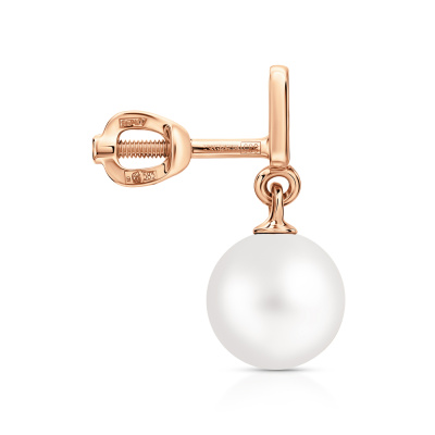 Серьги с 2 жемчугами пресноводными культ.белыми, 7.31 карат; Розовое золото 585 пробы.
