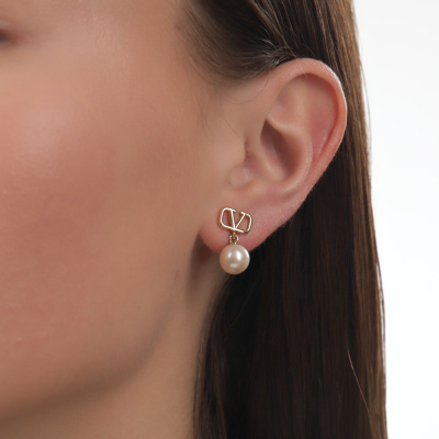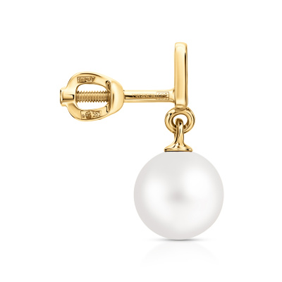 Серьги с 2 жемчугами пресноводными культ.белыми, 7.48 карат; Желтое золото 585 пробы.