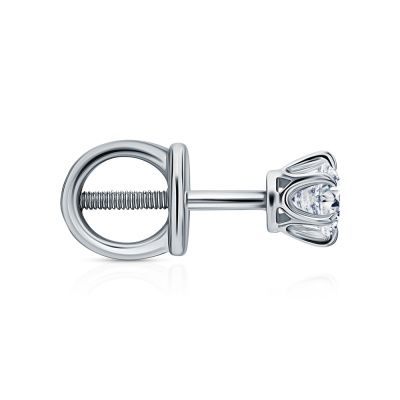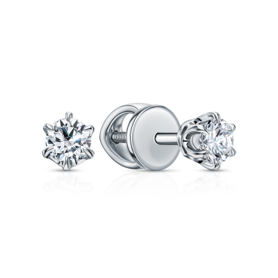 Серьги с 2 бриллиантами выращенными, 0.47 карат, огранка круг 57 граней, цвет 4, чистота 5, тип огранки А; Белое золото 585 пробы.