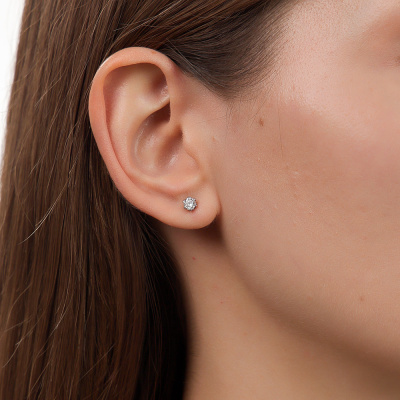 Серьги с 2 бриллиантами выращенными, 0.44 карат, огранка круг 57 граней, цвет 4, чистота 5, тип огранки А; Белое золото 585 пробы.