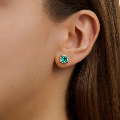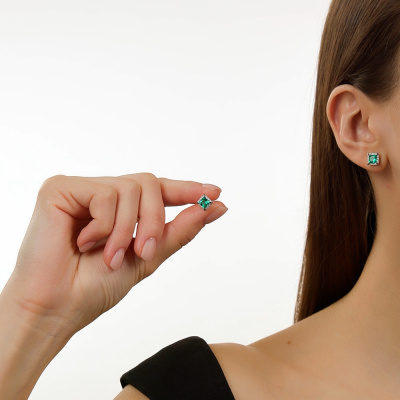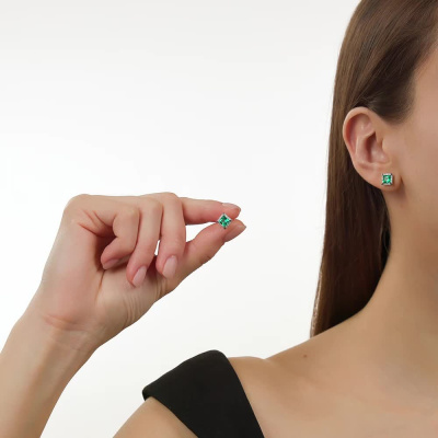 Золотые серьги с бриллиантами выращенными и изумрудами выращенными