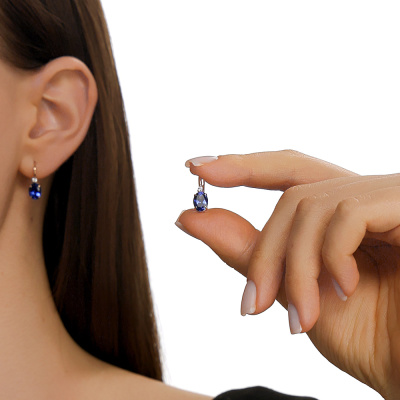 Золотые серьги с бриллиантами выращенными и сапфирами выращенными