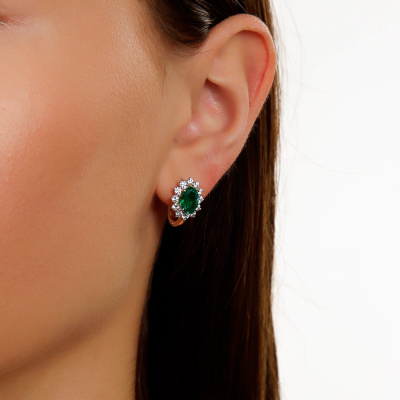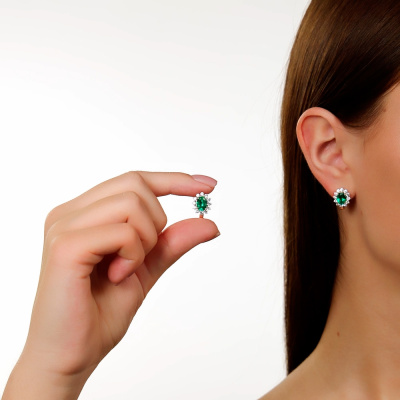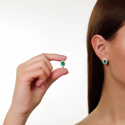 Золотые серьги с бриллиантами выращенными и изумрудами выращенными
