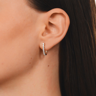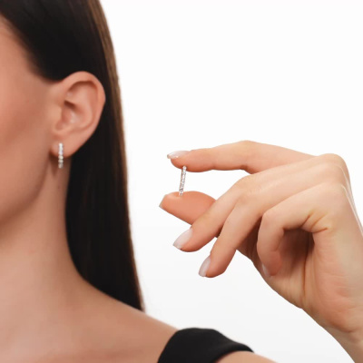 Серьги с 14 бриллиантами выращенными, 0.4 карат, огранка круг 57 граней, цвет 3, чистота 5, тип огранки А; Розовое золото 585 пробы.