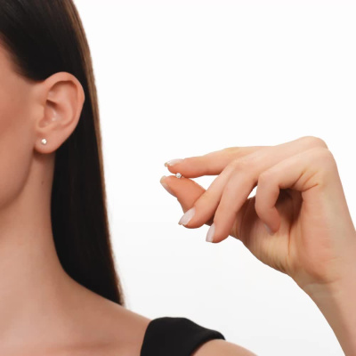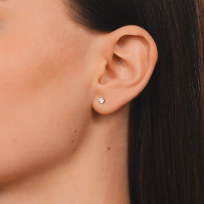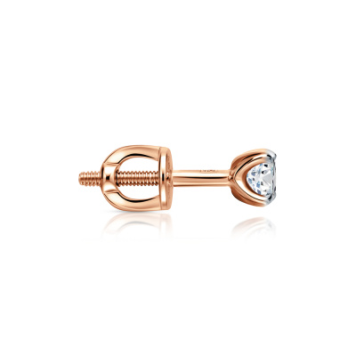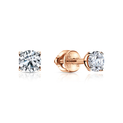 Серьги с 2 бриллиантами выращенными, 0.22 карат, огранка круг 57 граней, цвет 3, чистота 5, тип огранки А; Розовое золото 585 пробы.