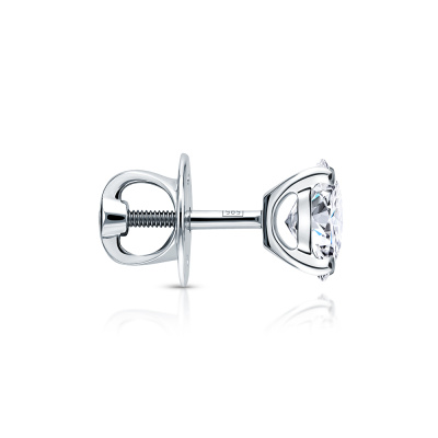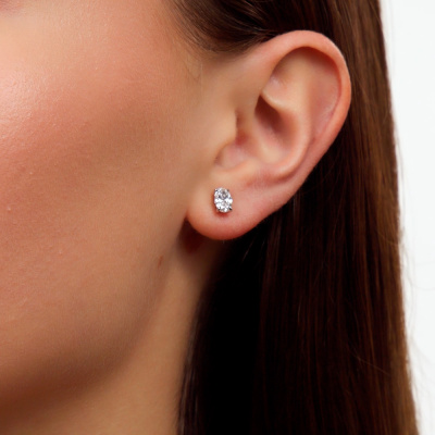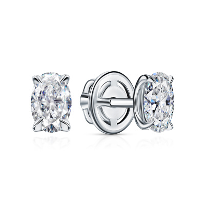 Серьги с 2 бриллиантами выращенными, 1.15 карат, огранка овал 57 граней, цвет 4, чистота 5, тип огранки А; Белое золото 585 пробы.