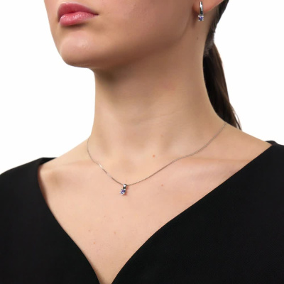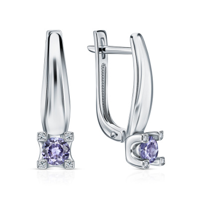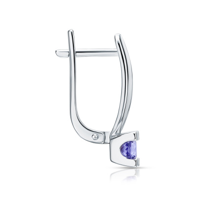 Серьги с 8 бриллиантами природными, 0.02 карат, огранка круг 17 граней, цвет 2, чистота 2, тип огранки А; 2 танзанитами природными, 0.35 карат, тип огранки В; Белое золото 585 пробы.