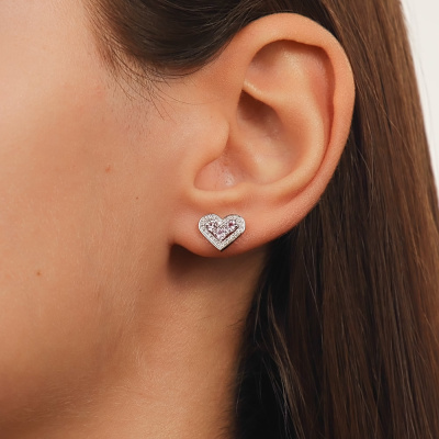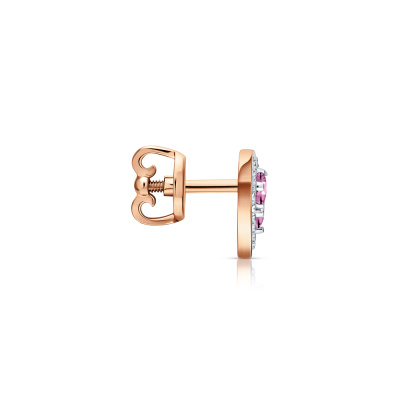 Серьги с 44 бриллиантами природными, 0.11 карат, огранка круг 17 граней, цвет 2, чистота 2, тип огранки А; 6 сапфирами розовыми природными, 0.45 карат, тип огранки В; Розовое золото 585 пробы.