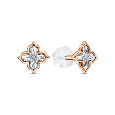 Серьги с 2 бриллиантами природными, 0.008 карат, огранка круг 17 граней, цвет 2, чистота 2; силикон; Розовое и белое золото 585 пробы.