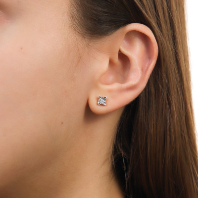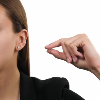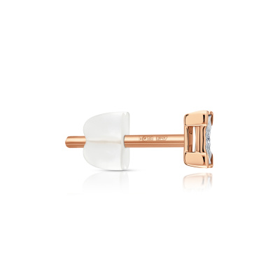 Серьги с 2 бриллиантами природными, 0.008 карат, огранка круг 17 граней, цвет 2, чистота 2; силикон; Розовое и белое золото 585 пробы.