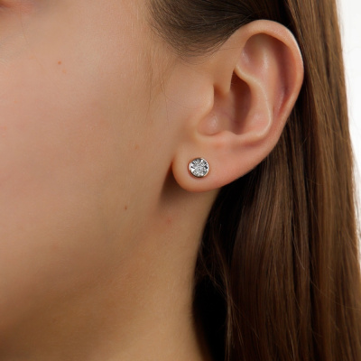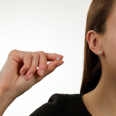 Серьги с 14 бриллиантами природными, 0.06 карат, огранка круг 17 граней, цвет 2, чистота 2; силикон; Розовое и белое золото 585 пробы.