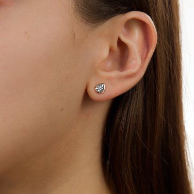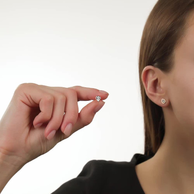 Серьги с 2 бриллиантами природными, 0.008 карат, огранка круг 17 граней, цвет 2, чистота 2; силикон; Розовое и белое золото 585 пробы.
