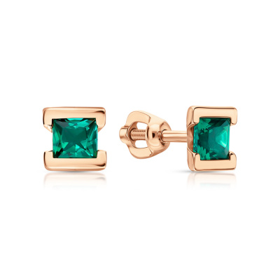 Серьги с 2 гидротермальными изумрудами, 0.52 карат; Розовое золото 585 пробы.